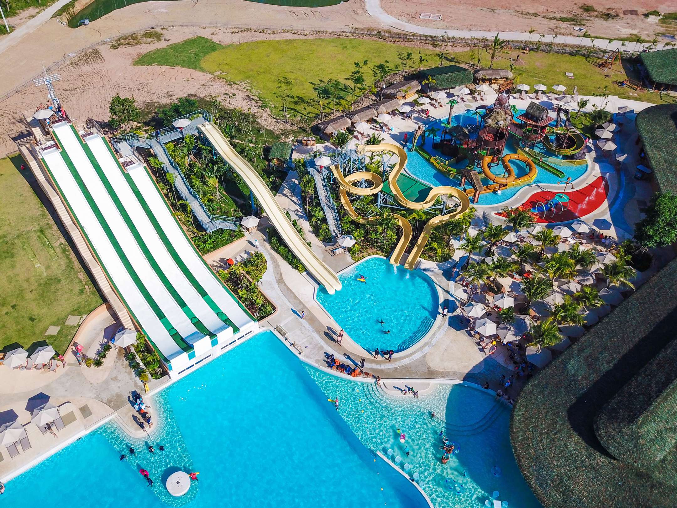 Located right at the heart of Blue Tree, the Blue Lagoon captures the center of one’s attention. The Blue Tree Lagoon offers a variety of games, slides, and activities for all ages. The Family Zone is a special play area for children, manned by lifeguards at all times. Those looking to rock climb or cliff dive can scale the Pinnacle's heights, which are situated directly in the Blue Tree Lagoon. From the cliff's summit, take on a challenge and enjoy breathtaking 360° views as a reward. Then dive right into the 4.5-meter-deep, crystalline blue water. Alternatively, for the ultimate aquatic sensation, launch yourself from one of four various sized Super Fly slide ramps 6 to 10 meters into the air. As if this weren’t enough, the Blue Lagoon also features a Skate Park, a zipline across the pool, and an activity zone called Ninja Warrior.